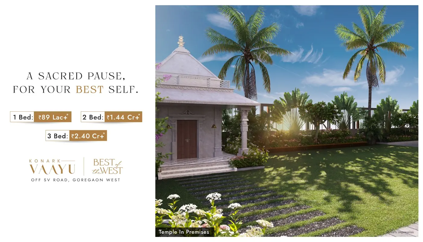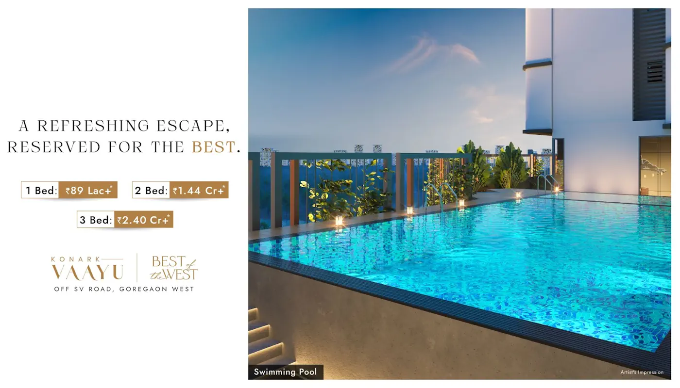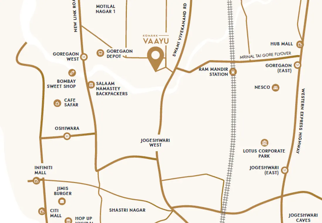 At Goregaon, West - By Konark DevelopersGoregaon West is where Mumbai finds its rhythm seamlessly blending business, leisure, and lifestyle in perfect harmony. Just moments away from the expansive 160-acre ODC (Office District Complex), this vibrant neighbourhood places you at the heart of a dynamic lifestyle hub, ideal for work, relaxation and everything in between.Effortless connectivity defines the location, with swift access via the six-lane 90-feet Road, SV Road, JVLR Flyover and Mrinal Tai Gore Flyover. Proximity to Ram Mandir Railway Station and Metro lines ensures you're always well-connected to every corner of the city and be yond.