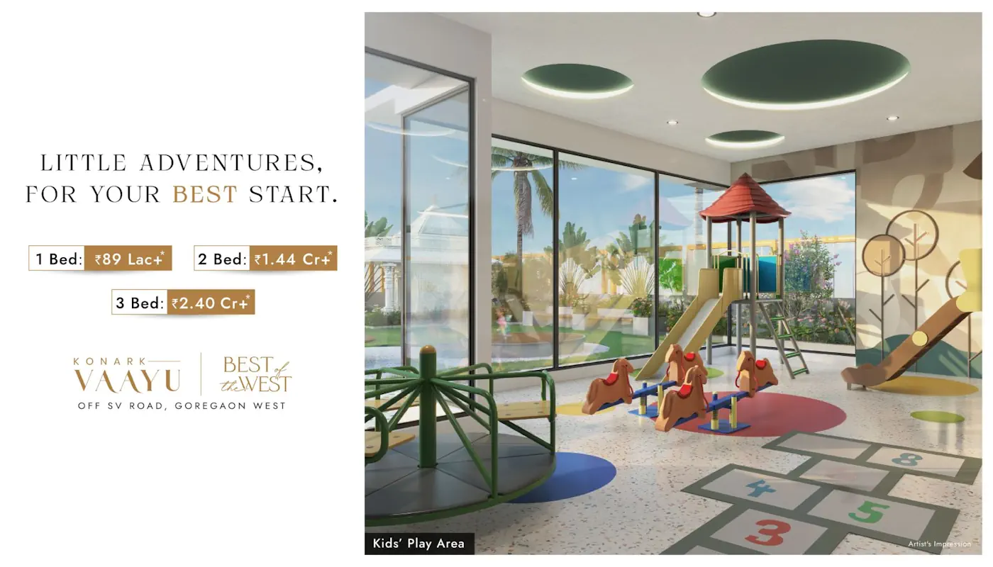 At Goregaon, West - By Konark DevelopersGoregaon West is where Mumbai finds its rhythm seamlessly blending business, leisure, and lifestyle in perfect harmony. Just moments away from the expansive 160-acre ODC (Office District Complex), this vibrant neighbourhood places you at the heart of a dynamic lifestyle hub, ideal for work, relaxation and everything in between.Effortless connectivity defines the location, with swift access via the six-lane 90-feet Road, SV Road, JVLR Flyover and Mrinal Tai Gore Flyover. Proximity to Ram Mandir Railway Station and Metro lines ensures you're always well-connected to every corner of the city and be yond.